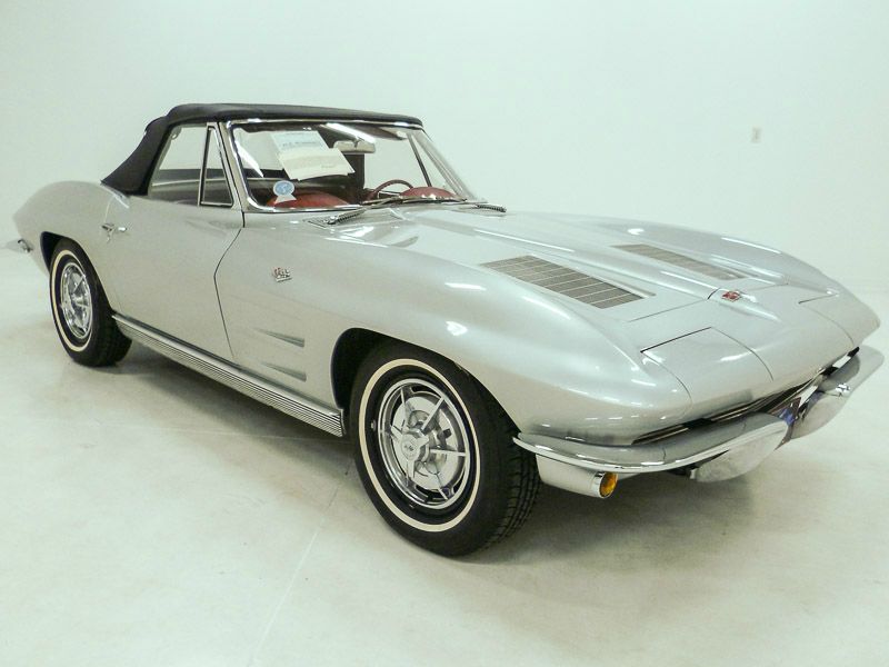 1001T..1963 Corvette Convertible, 327-300 hp, 4 speed numbers matching original motor, transmission and rear end, also has factory original body/trim tag. Sebring Silver paint with Riverside Red interior and Black soft top. Very rare desirable and correct color combination. Body-off restored recently. These type of restorations normally cost between $80,000.00 to $125,000.00. Very early car that was built the 4th week of production (VIN #1370). Also has an affirmation by CCAS/Grenning as to the legitimacy and originality of the engine block, stamp pad, and the engine stamp. Optioned with power steering, T-10 transmission, 3.36 posi, AM/FM radio, seat belts, hubcaps and white stripe radials. Most all factory correct type components including the spare, jack, jack tools, floor mats, washer system, shifter, shielding, air cleaner, starter, spark plug shields, hoses, hose clamps, valve covers, #3461 carb, expansion tank, radiator, gas door assembly, long base bowtie mirror, glove box door, cookie tin hood, owners manual, sales brochure, and T-3 headlights. Documented with the factory literature, CCAS/Grenning Engine Stamp Affirmation, and previous owner title. Production date of October 12th, 1962 and delivered new by Feese & George Chevrolet in Sullivan, MO. (dealer code 177 in zone 3) per the official Franz Estereicher and NCRS/GM Shipping Data Records (SDR). From the past owner of 21 years. Looks, runs, and drives excellent. CC:1 $90,000.00