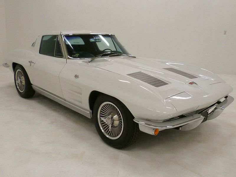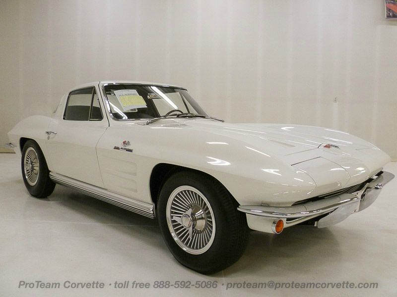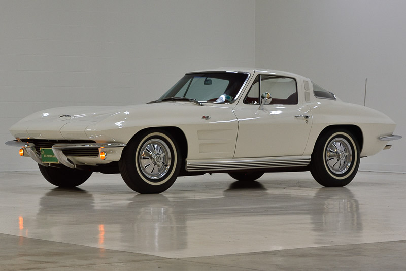 1027T..1963 Corvette Split Window Coupe with rare factory air, 327-300 hp, 4 speed, numbers matching motor and rear end, also has factory original body/trim tag. Ermine White paint with Tuxedo Black interior. One of 278 factory air conditioned Corvettes produced in the first year of A/C production! California car since new with a totally rust-free chassis. Body-on restored recently including paint, interior, chrome, motor and mechanicals by California based specialists. Optioned with factory air conditioning, M-20, 3.36 posi, AM/FM radio, stainless exhaust, tinted glass, K.O. aluminum wheels, and blackwall radials. Most all factory correct type components including the spare, jack, jack tools, K.O. wheel hammer, washer system, shifter, shielding, #0133 dated A/C compressor, A/C only air cleaner, #633 A/C alternator, A/C radiator support, carb, spark plug shields, hoses, hose clamps, exhaust heat shields, gas door assembly, Bowtie mirror, glove box door, cookie tin hood, owners manual, and sales brochure. Documented with copies of the previous owner title and delivering dealer. Production date of June 8th, 1963 and delivered new by Rancho Chevrolet in Reseda, CA (dealer 419 in zone 20) per the official NCRS/GM Shipping Data Records (SDR). Today, the one-year only split window remains one of the most iconic designs in the history of the American automobile and as a result, the 278 factory built factory air conditioned cars are simply in a league of their own! Looks, runs and drives excellent. CC+2 $225,000.000