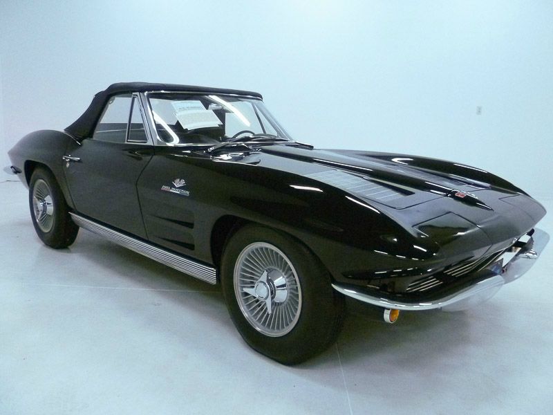 1045R..1963 Corvette Z06 Convertible, 327-360 hp, fuel injected, 4 speed, numbers matching motor, transmission and rear end, also has factory original body/trim tag. Tuxedo Black paint with matching Black interior and Black soft top but originally Riverside Red paint but since has been changed to a very attractive Tuxedo Black exterior. Body-off restored in show condition with a NO HIT front end and a rust-free chassis. These type restorations normally cost between $100,000.00 to $150,000.00. Radio delete car optioned with Z06 special power brakes with Kelsey Hayes dual-circuit master cylinder, M-20, 4.56 posi (one of 751 produced), Z06 heavy duty brakes with cooling fans, Z06 special heavy duty suspension, off road exhaust, Kelsey K.O. aluminum wheels, and vintage 6.70x15" blackwall tires. Most all factory correct type components including the spare, replacement jack, jack tools, heavy duty shocks, seat belts, washer system, shifter, air cleaner, distributor, idler pulley, hoses, hose clamps, hood alignment blocks, F.I. unit, F.I. fuel filter, 6 qt. oil pan, finned balancer, exhaust heat shields, expansion tank, five Kelsey K.O. aluminum wheels, gas door assembly, bowtie mirror, glove box door, cookie tin hood, owners manual, sales brochure, and T-3 headlights. Documented with a binder of history, photos, factory literature, previous owner title and NCRS Shipping Data Report. The Z06 Special Performance option added $1,293.95 to the base price and only 199 were produced. Production date of June 25th, 1963 and delivered new by Community Chevrolet in Malden, MA (dealer code 179 in zone 32) per the official NCRS GM Shipping Data Records (SDR). Looks, runs, and drives excellent. CC:1 $299,000.00